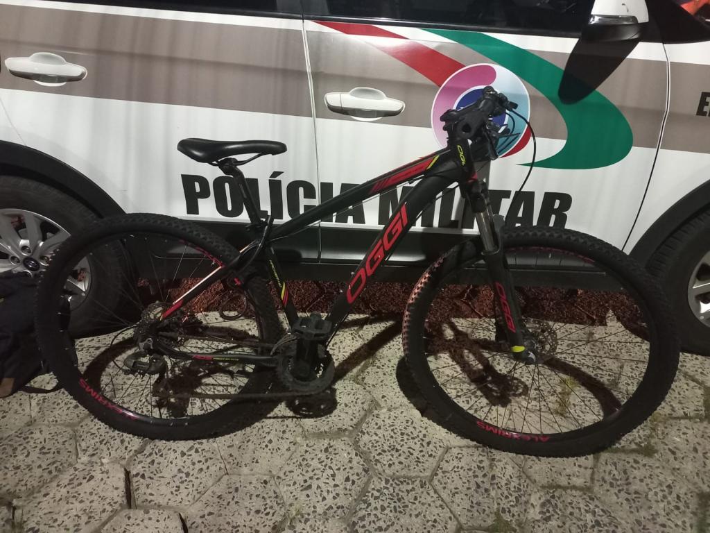 Uma bicicleta furtada foi recuperada e dois homens foram detidos pela Polícia Militar na noite desta segunda-feira, 27 de abril, após uma ocorrência registrada no bairro Bombas, em Bombinhas, nas proximidades do calçadão da praia. A ação aconteceu por volta das 23h50.