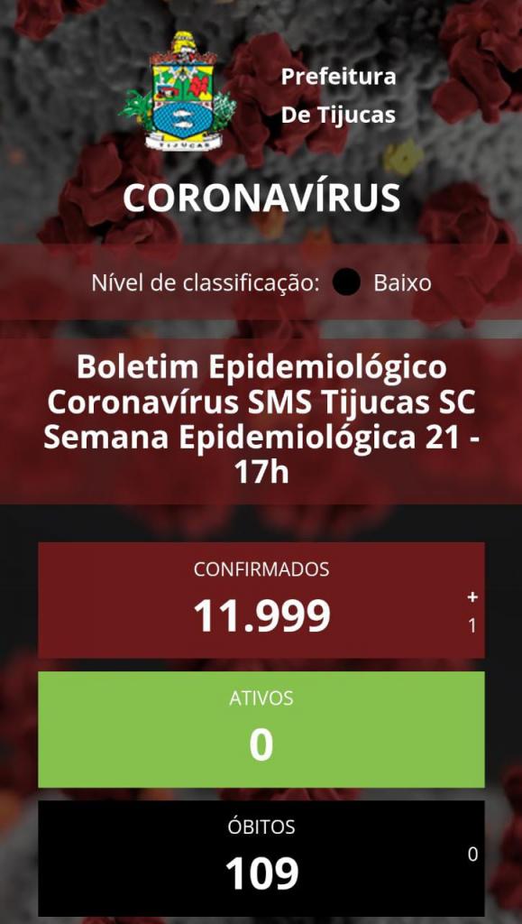 De acordo com o último Boletim Epidemiológico Coronavírus do município, divulgado no dia 26 de maio, Tijucas está há duas semanas sem registro de caso positivo para Coronavírus.