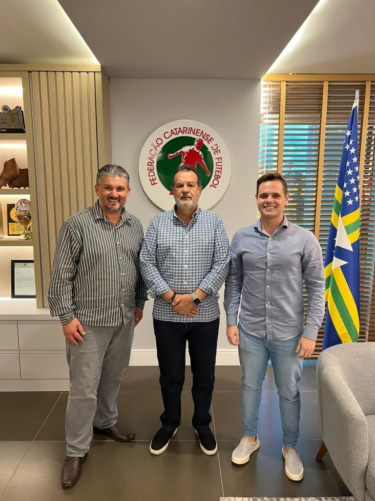 Na tarde da última quinta-feira, dia 11 de maio, a diretoria do Tiradentes Esporte Clube, representada pelo presidente Vinicius Severiano e pelo vice-presidente, Erivelto Leal dos Santos, o Danone, estiveram na FCF (Federação Catarinense de Futebol) para tratar da reativação do cadastro profissional do Clube Tijuquense.