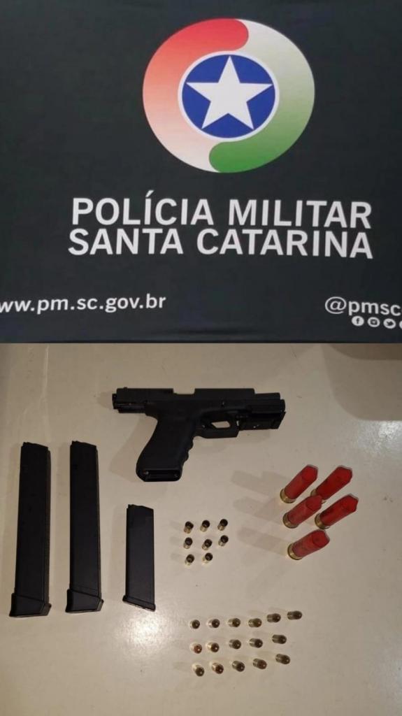 Com apoio de uma mulher que estava no local durante a abordagem, os policiais conseguiram localizar a pistola de calibre 9 milímetros utilizada, além de carregadores e munições, inclusive cartuchos calibre 12.