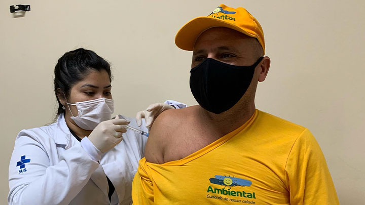 A vacinação contra o Novo Coronavírus segue avançando em Itapema. Nesta terça-feira, 08 de junho, os trabalhadores de limpeza urbana e manejo de resíduos sólidos da empresa Ambiental receberam a primeira dose da vacina.