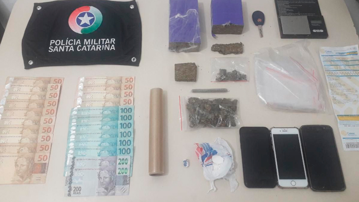 Ele foi visto entrar no carro e foi acompanhado pela guarnição até ser abordado. Um cigarro de maconha e uma bucha de cocaína, prontos para venda, foram encontrados. Ele alegou que morava em Porto Belo e estava indo apenas pagar uma conta. Afirmou também que havia ido no calçadão de Meia Praia para fumar maconha, mas desistiu ao perceber a presença da polícia.