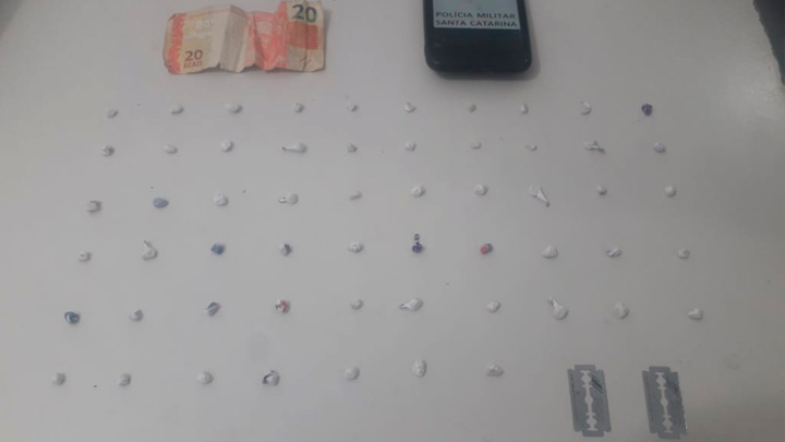 Os soldados pularam o muro da residência e o abordaram. Em buscas apenas os R$20 estavam com o rapaz. Porém, na casa havia dois pacotes contendo 53 pedras do entorpecente já embaladas para venda e material para fracionar a droga.