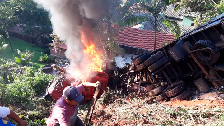 Caminhoneiro experiente, ele fazia a descida no trecho. Segundo a Polícia Rodoviária Estadual paulista, o veículo perdeu o freio e colidiu contra outros dois veículos. Todos foram arrastados e caíram em um barranco de, aproximadamente, sete metros de altura.