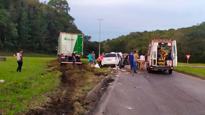De acordo com as informações repassadas por socorristas, as duas vítimas, de 38 e 74 anos, estavam em um veículo Suzuki, junto com uma criança, de 10 anos, quando foram atingidas por uma carreta.