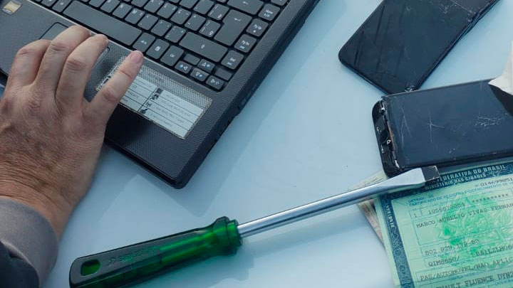 No automóvel foram encontrados uma televisão, dois notebooks, dois pares de tênis, três celulares e uma chave de fenda grande.
