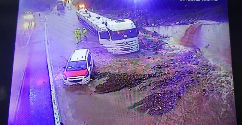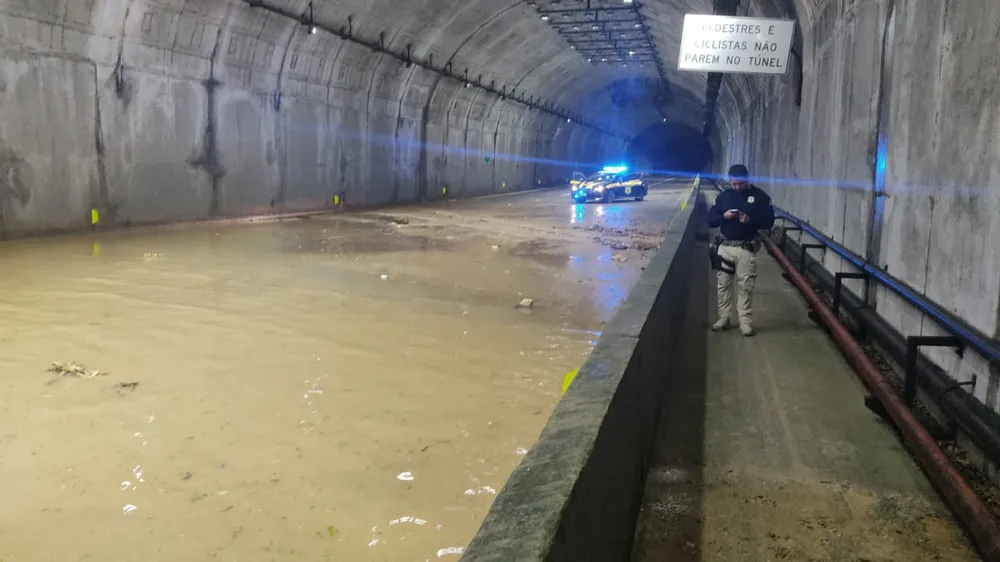 A interdição ocorreu após uma chuva forte atingir o trecho e alagar o interior do túnel. A informação da interdição foi feita pela Polícia Rodoviária Federal (PRF). Máquinas já estão trabalhando na desobstrução, mas não há previsão para liberação.