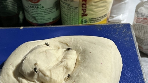 Durante a inspeção, os fiscais constataram a presença de mofo nos produtos, insetos aderidos aos alimentos, falta de higiene nos ambientes de produção e armazenamento, além do uso do espaço para pernoite junto à área de manipulação de alimentos. As irregularidades configuram risco iminente de contaminação.