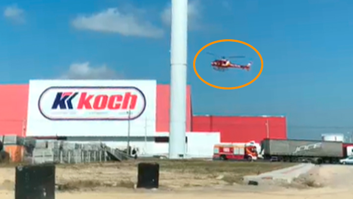 O Helicóptero Arcanjo foi acionado para levar o trabalhador, em estado grave, para o hospital.