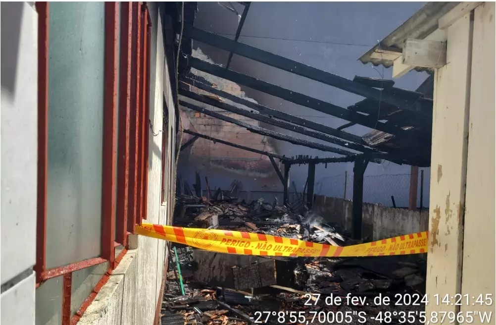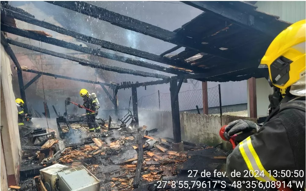 Uma casa de madeira utilizada para a manutenção de sofás foi completamente consumida por um incêndio na tarde desta terça-feira, 27 de fevereiro. O incidente, que ocorreu por volta das 13h30, deixou o local, localizado na rua Melanie Glaush, em Porto Belo, totalmente destruído.
