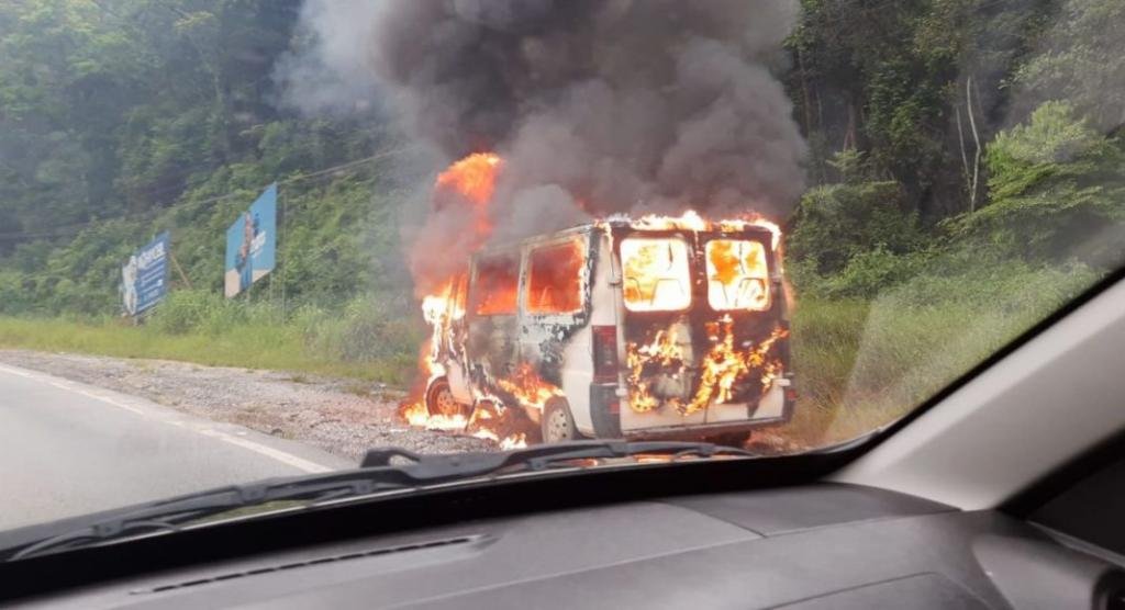 Uma van foi totalmente consumida por um incêndio na manhã desta quarta-feira,17 de janeiro, por volta das 7h, na rodovia Gentil Batistti Archer (SC-108), no bairro Santa Luzia, em Brusque. As chamas envolveram o veículo no sentido Brusque-Nova Trento, e imagens registradas mostram o automóvel parado no acostamento da rodovia.
