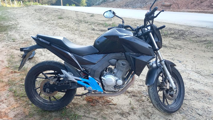 Um veículo com registro de furto/roubo foi recuperado após a polícia ser chamada para verificar uma motocicleta abandonada na estrada Geral do Sertão do Trombudo, em Itapema.