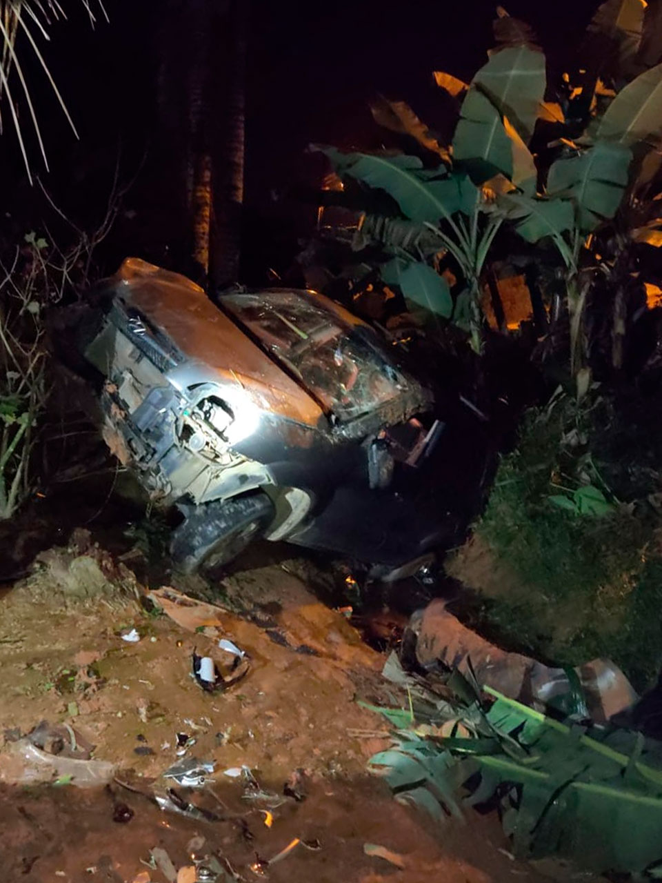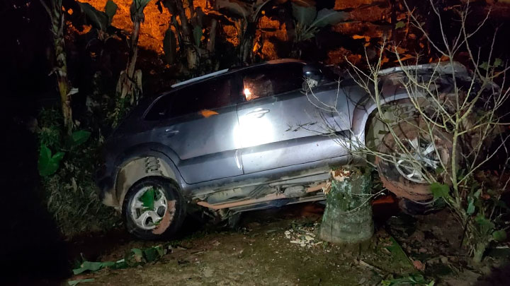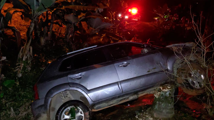 A Polícia Militar Rodoviária foi acionada e encontrou a Hyundai/Tucson, com placas de São Paulo/SP, completamente destruído. O carro colidiu em bananeiras, até parar nas proximidades de um riacho. Quando as equipes chegaram, o envolvido já não estava no local.