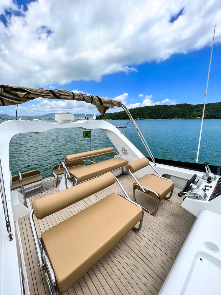 A Safety Yatchts, é uma das principais empresas do segmento. Ela criou roteiros com passagem pelas praias mais paradisíacas do litoral catarinense e hoje já tem a agenda lotada para os próximos dias.