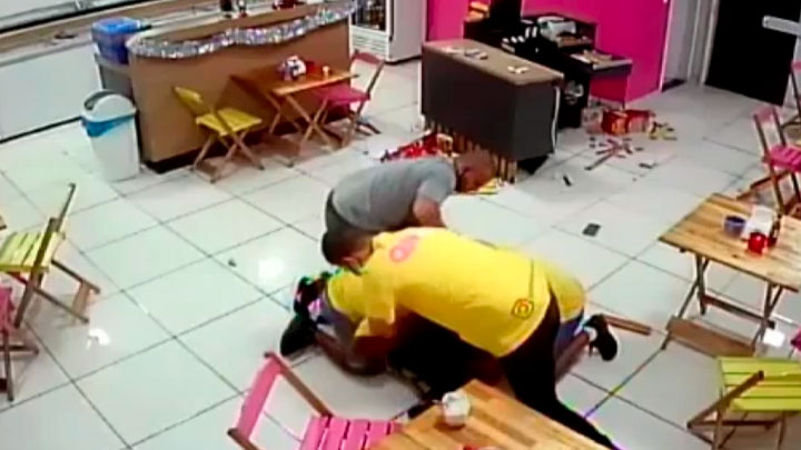 Durante a ação, no momento em que pega o dinheiro do caixa, um dos funcionários se aproxima por trás e, com uma cadeira, ataca o criminoso. Rapidamente outros funcionários o ajudam, juntos eles conseguem deter o homem.
