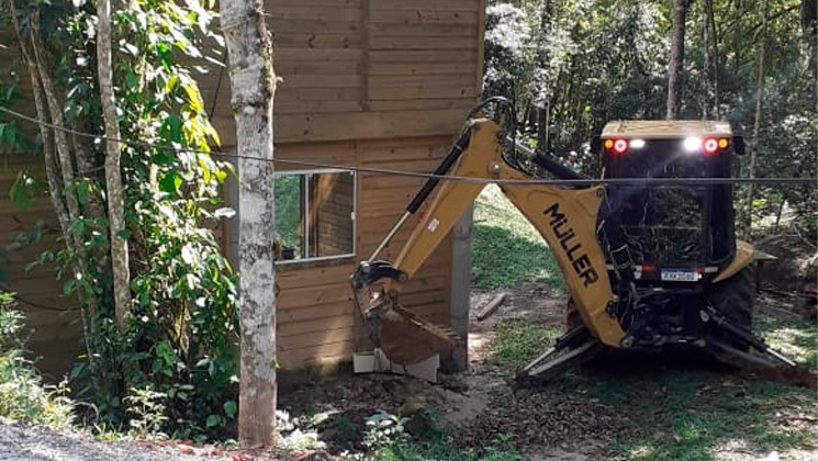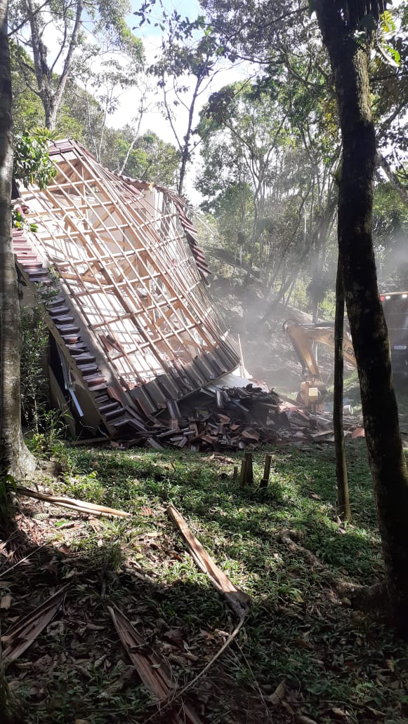 N?a manhã desta quarta-feira, 05 de janeiro, foi executado um mandado de decisão judicial para a demolição de obra irregular, em uma área de preservação permanente na cidade de Itapema.