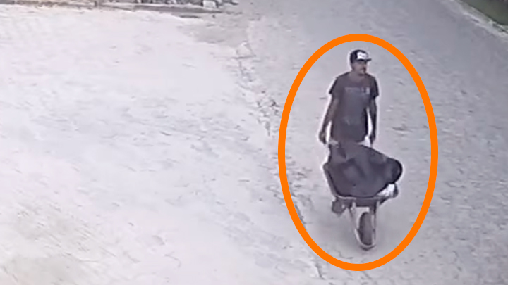 Entre os produtos furtados estão uma serra Makita e outra de mármore, um rompedor 7kg, um aparelho compressor, lixadeira e máquina de pintura, além de três extensões. Um carrinho de mão também foi levado e nas imagens o autor aparece utilizando o mesmo para carregar os demais itens.
