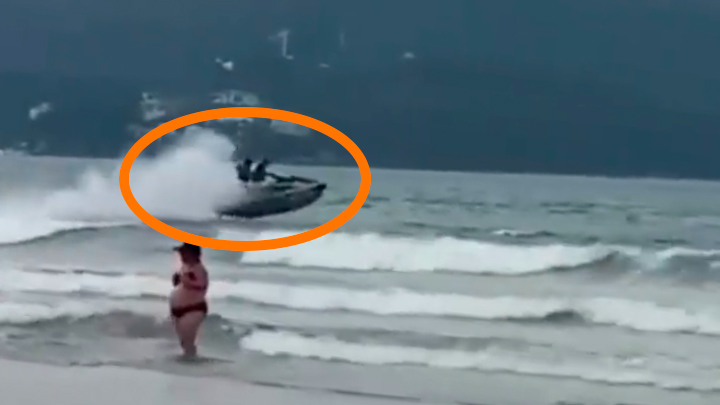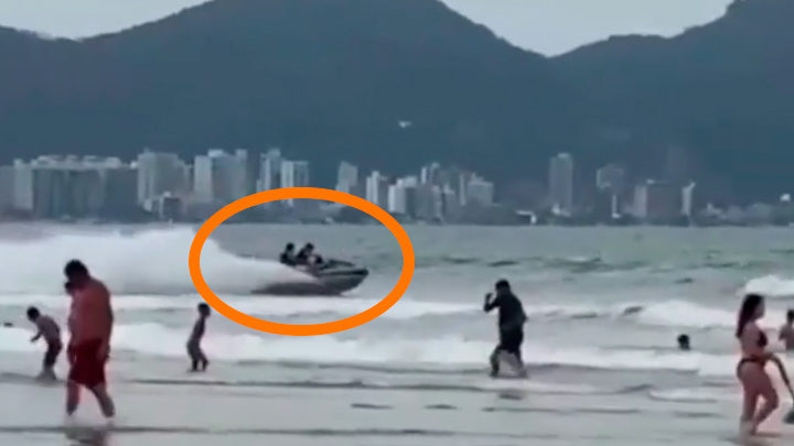 Internautas gravaram registros da ação. Nas imagens, duas pessoas aparecem na embarcação a poucos metros dos banhistas. A dupla segue em alta velocidade e saltam algumas ondas. Por sorte, ninguém foi atingido.